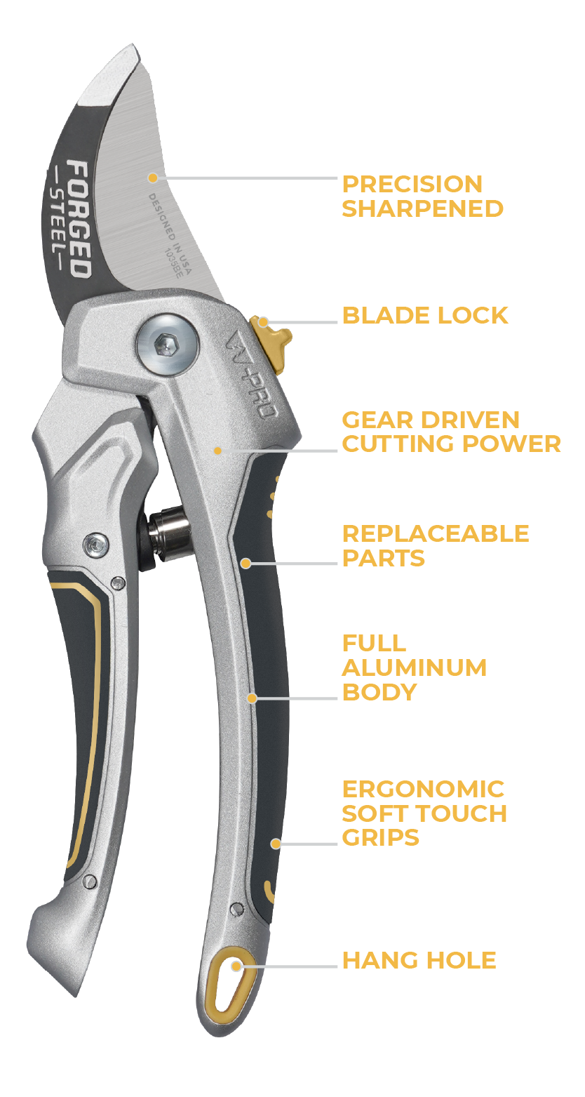 Introducing the last pruner you will ever need to buy. The Woodland Tools Pro Series Pruner. This is the next generation of power and precision – the kind of pruner that thrives in the vineyard, orchard or greenhouse and anywhere nature dares to grow out of line. Engineered in the USA, this pruner combines powerful cutting with the finesse of a grower’s touch. Crafted for those who demand precision and power in every cut, taking pride in their work. Designed for the Professionals who wear their pruner like a badge of honor on their belt, this tool is ready to be your lifelong trusted companion. It’s more than just a pruner – it’s a symbol of your dedication to your craft. Say goodbye to breakable tools and say hello to a lifetime of relentless performance. Get ready to elevate your craft and end the era of disposability. Embrace the power. Own the work.